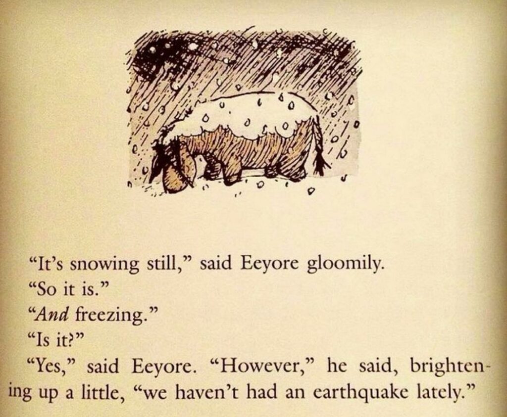 Sometimes taking on the attitude of a Stoic and accepting what is, can, in itself, be a silver lining. When we stop trying to make ‘everything alright’ and start accepting where we are at, we reduce stress around ‘what isn’t.’ In his latest book Happy, Derren Brown says: “To approach [happiness] the other way, and see it as an absence of disturbances is helpful.” Sometimes called ‘strategic’ or ‘defensive’ pessimism, it is a way of seeing the world in an open honest way, as opposed to covering over the bits that we don’t want to see. The British version of this is when someone says “shall I make some tea?” in response to a difficult conversation. Optimism can be a form of avoidance, and can- in the long run- cause much more pain and suffering.